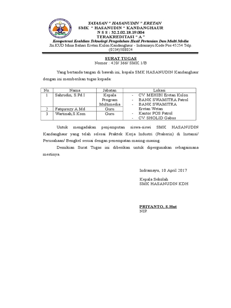 Pengertian surat tugas adalah surat resmi yang dibuat dan dikeluarkan oleh seorang pejabat yang berwenang di instansi atau lembaga tertentu dimana isinya menugaskan seorang pegawai/ staff untuk. Disini kami akan bahas seputar surat tugas mulai dari pengertian hingga contoh surat tugas yang baik dan benar. Zainul azhari pk.pt ipnu unisla tertib administrasi, modal kemajuan organisasi. Surat tugas ini bisa diartikan sebagai surat yang dikeluarkan oleh instansi tertentu atau pihak yang lebih tinggi dan ditujukan kepada bawahannya untuk melaksanakan sebuah tugas. Contoh surat tugas dalam artikel ini diantaranya adalah surat tugas organsisasi, surat perintah tugas, perjalanan dinas dan yang lainnya. Ketua umum pac ipnu tikung alamat : Surat tugas dapat dikelompokkan menjadi beberapa jenis berdasarkan tugas maupun instansi yang menerbitkan. Sebagai salah satu organisasi yang secara berkelanjutan melakukan kaderisasi. Administrasi kepanitiaan dan administrasi limpung untuk mendapatkan surat pengesahan pimpinan cabang atas kepengurusan pr.ipnu desa. Namun terkadang penugasan harus dilakukan secara resmi, dimana tentunya mengunakan surat. Dengan ini aku memberikan tugas kepadamu pribadi. Surat tugas biasanya akan dikeluarkan ketika ada salah satu karyawan dari perusahaan, lembaga pemerintahan atau instansi yang lainnya untuk menugaskan pekerjaan diluar kantor. Surat tugas adalah surat resmi yang di buat dan di keluarkan oleh seorang yang berwenang dalam suatu lembaga atau instansi tertentu.